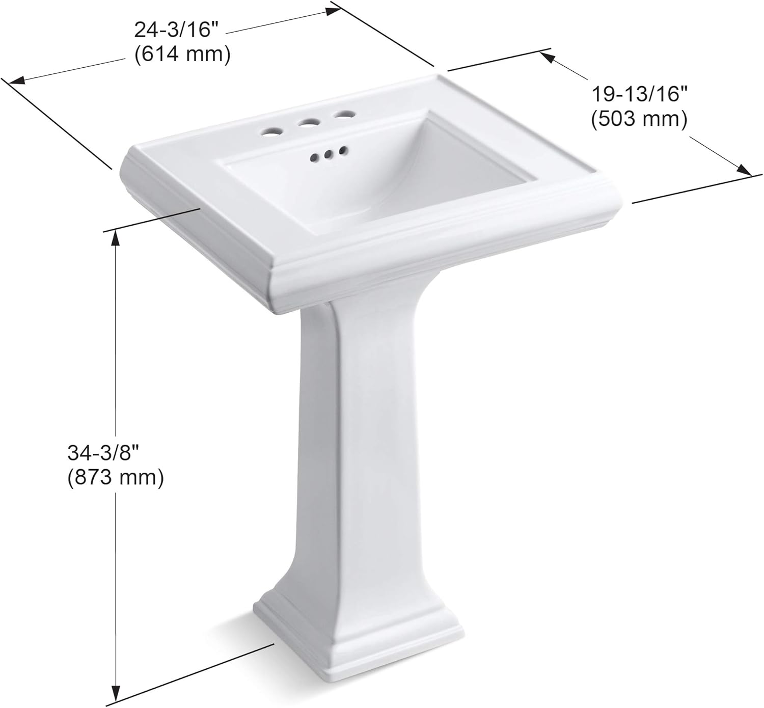 kohler tresham pedestal sink specs